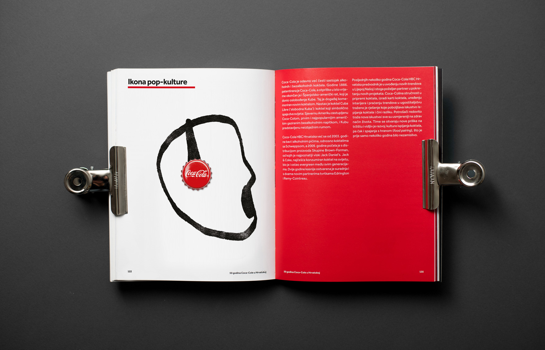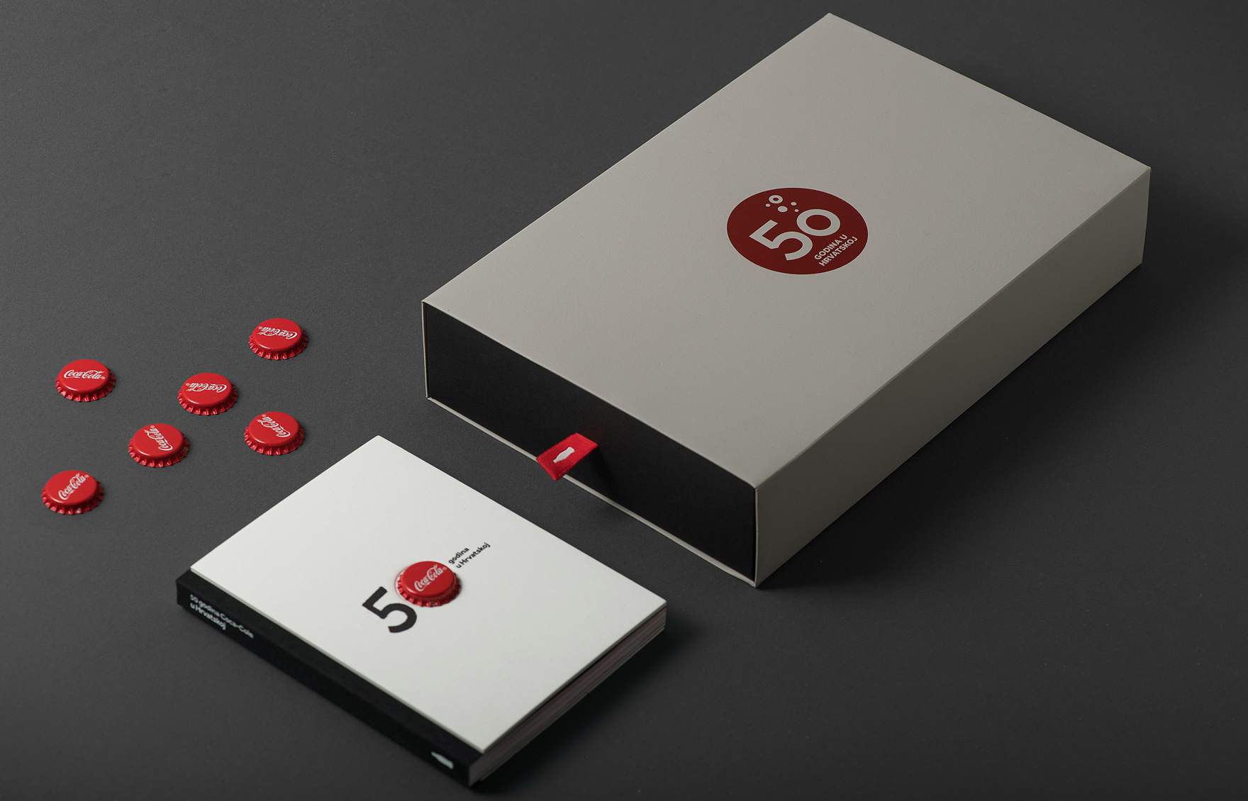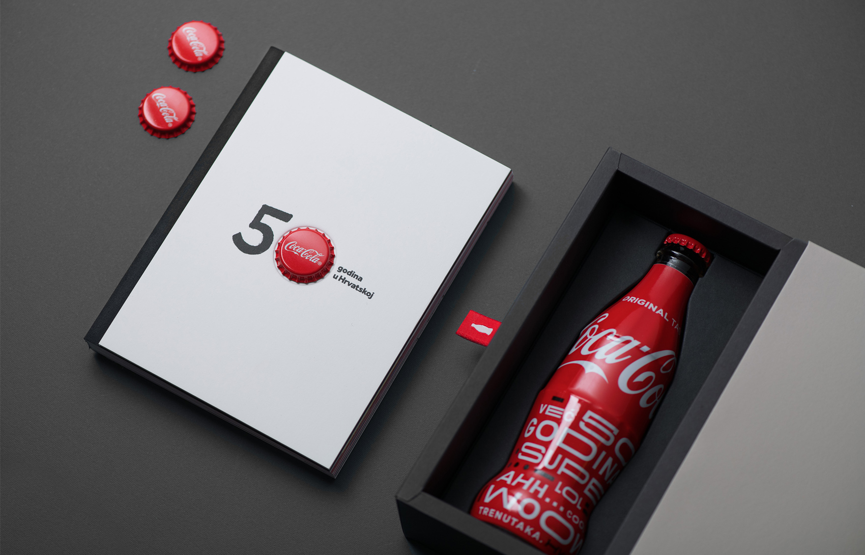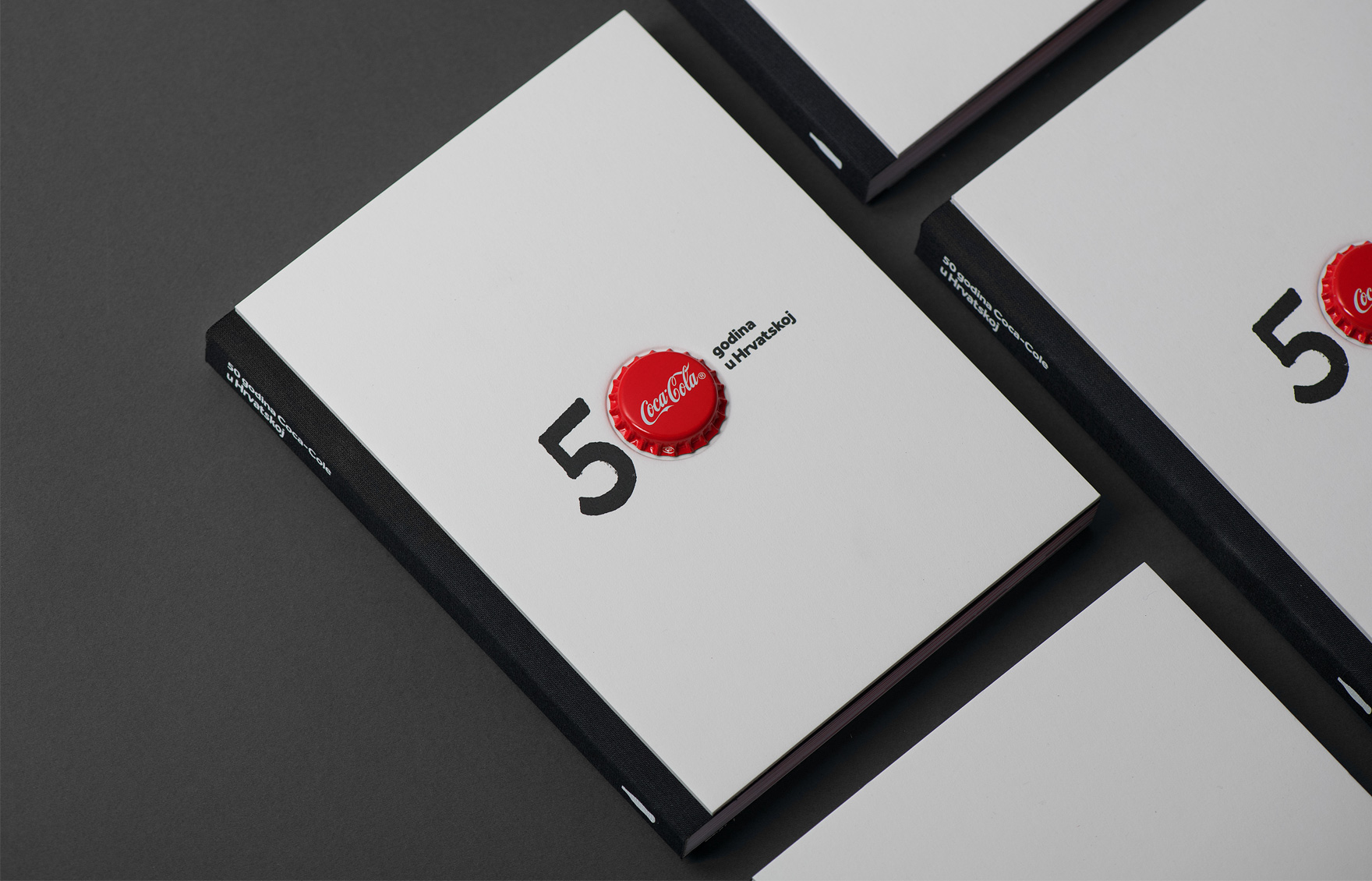 Coca-Cola HBC Croatia slavila je u prosincu 2018. 50 godina djelovanja u Hrvatskoj. Za tu priliku odlučili su izraditi knjigu koja će otkriti aktivnosti, povijest i utjecaj Coca-Cole u Hrvaskoj kroz tih 50 godina. Knjiga se djelila gostima gala večeri u Hrvatskom narodnom kazalištu. Dizajnirali smo kutiju koja je sadržavala knjigu i bocu Coca-Cole. Naslovnica knjige ima utisnuti pravi čep od Coca-Cole kao dio obljetničkog logotipa.
