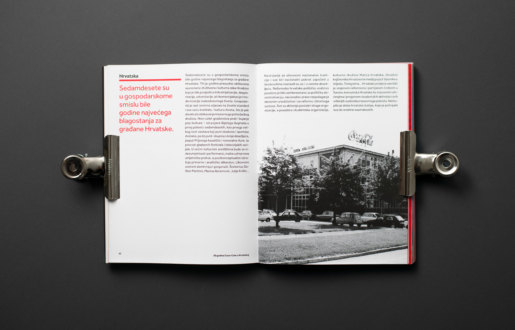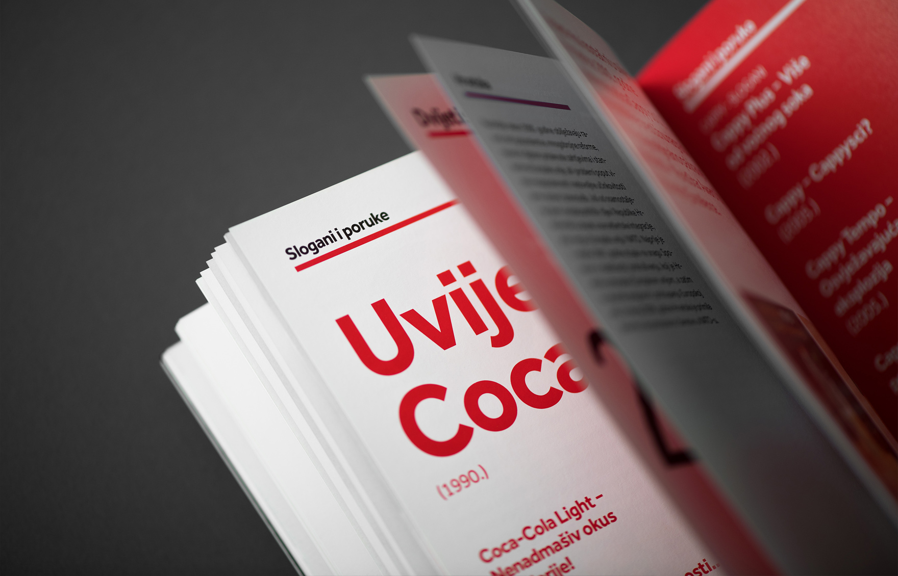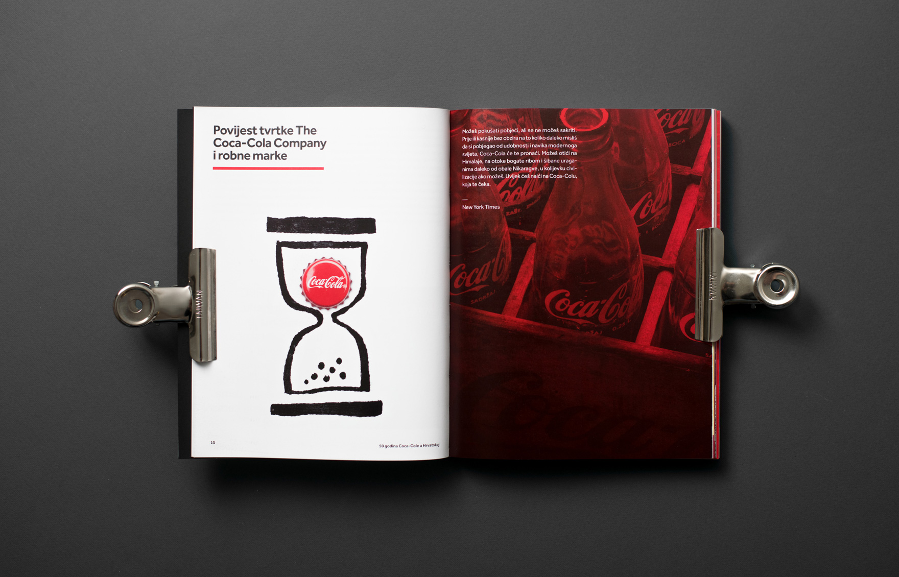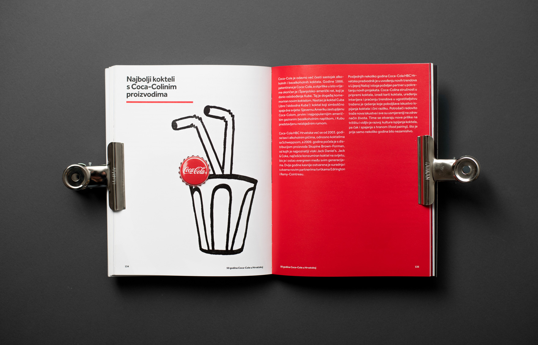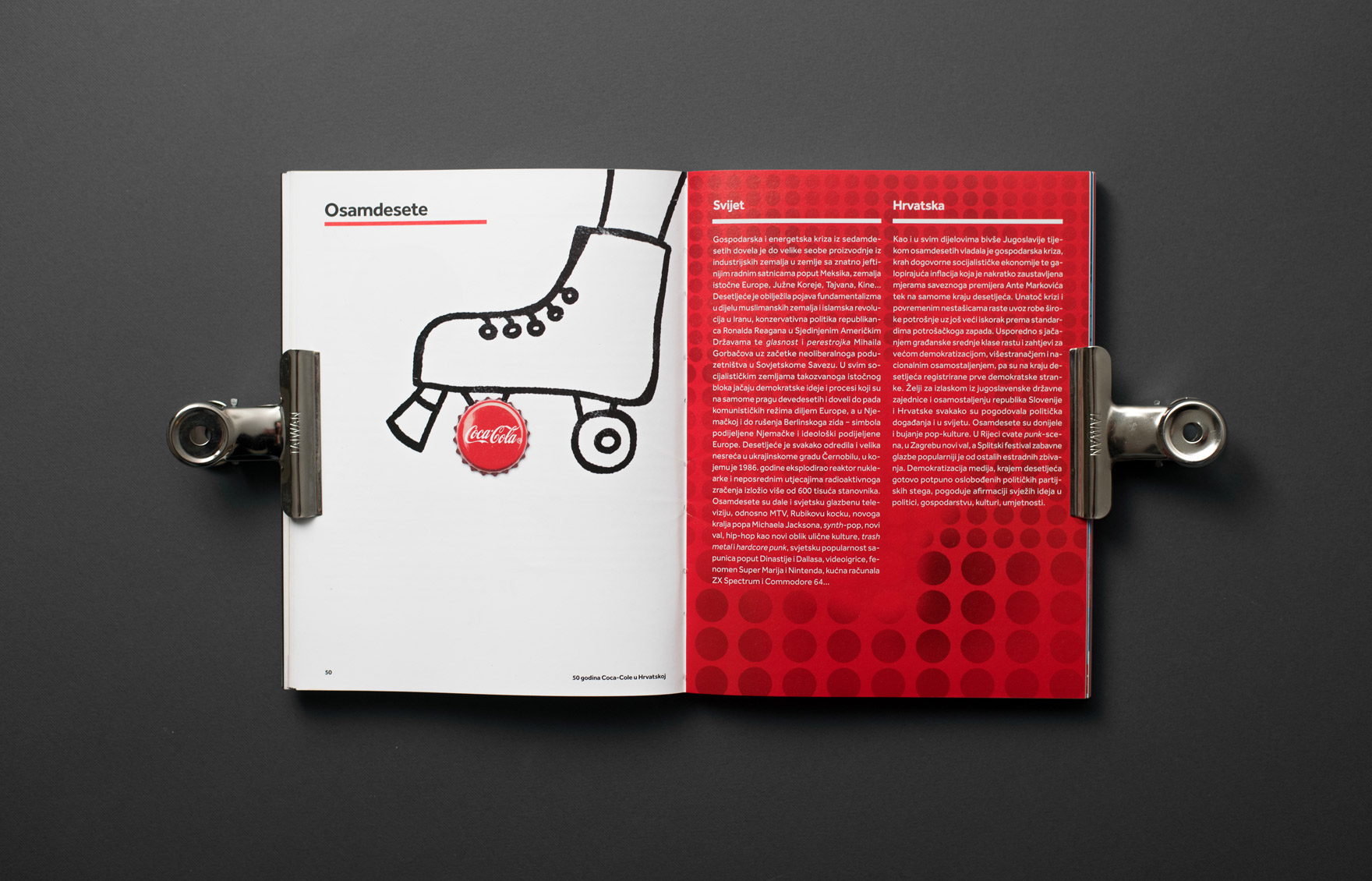 Coca-Cola HBC Croatia slavila je u prosincu 2018. 50 godina djelovanja u Hrvatskoj. Za tu priliku odlučili su izraditi knjigu koja će otkriti aktivnosti, povijest i utjecaj Coca-Cole u Hrvaskoj kroz tih 50 godina. Knjiga se djelila gostima gala večeri u Hrvatskom narodnom kazalištu. Dizajnirali smo kutiju koja je sadržavala knjigu i bocu Coca-Cole. Naslovnica knjige ima utisnuti pravi čep od Coca-Cole kao dio obljetničkog logotipa.