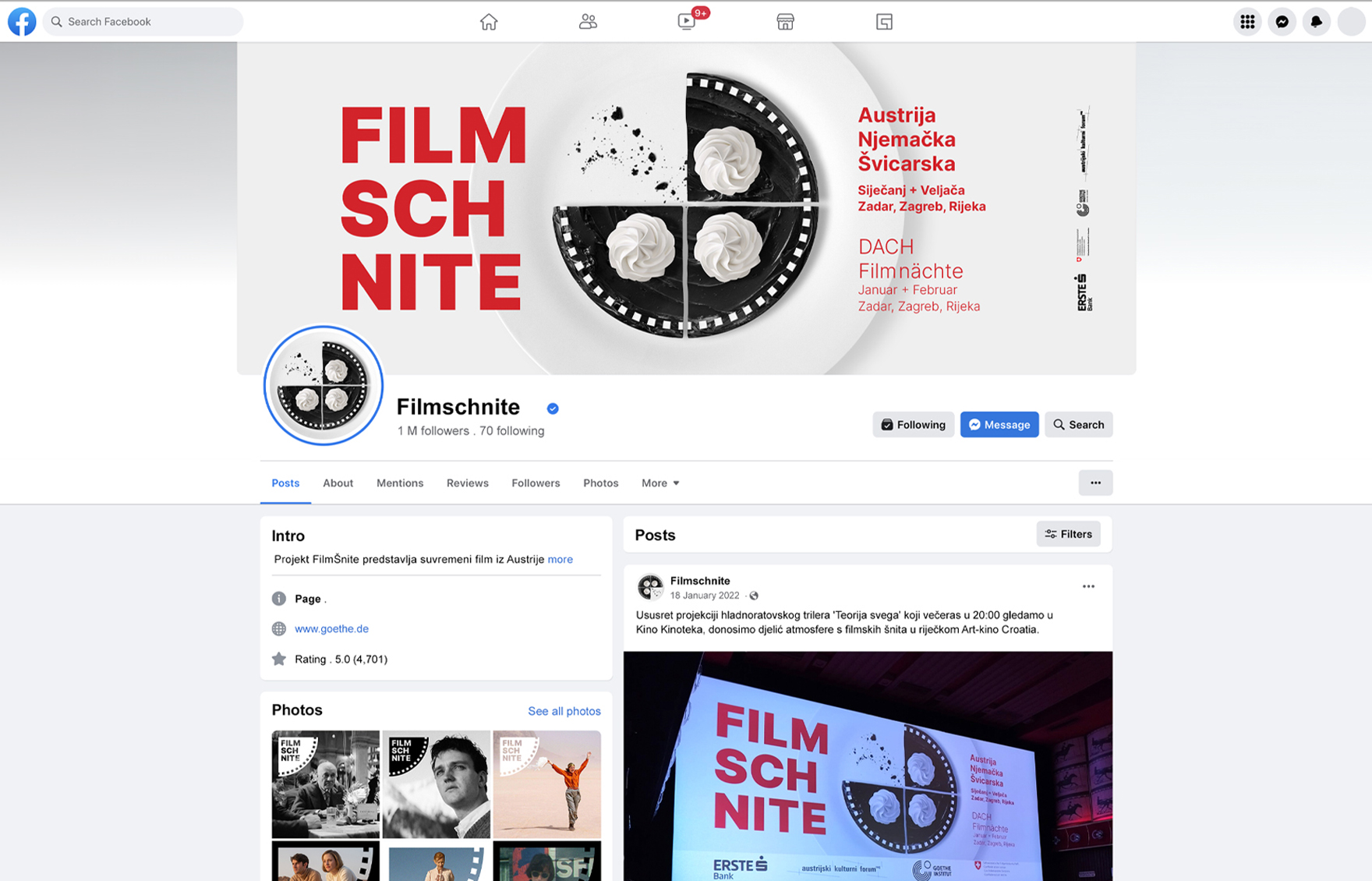 „Filmschnite“ je zajednički projekt Austrijskog kulturnog foruma, Goethe-Instituta Kroatien i Veleposlanstva Švicarske Konfederacije u Hrvatskoj posvećen predstavljanju suvremenog filma na njemačkom iz Austrije, Njemačke i Švicarske.