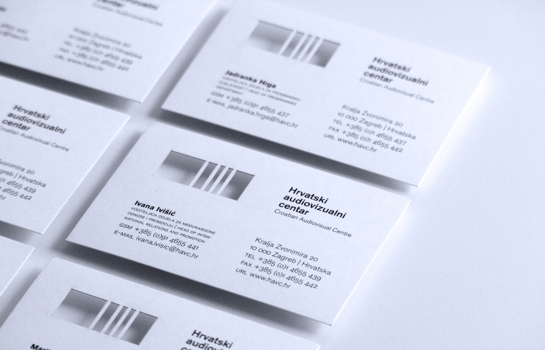 Pobjednički rad na natječaju za vizualni identitet Hrvatskog audiovizualnog centra koji smo dobili u suradnji s Vanjom Cuculićem. Znak HAVC-a je shematski prikaz najkorištenijih filmskih formata (4:3, 16:9…) i kvadrata kao vezom s nacionalnim identitetom.