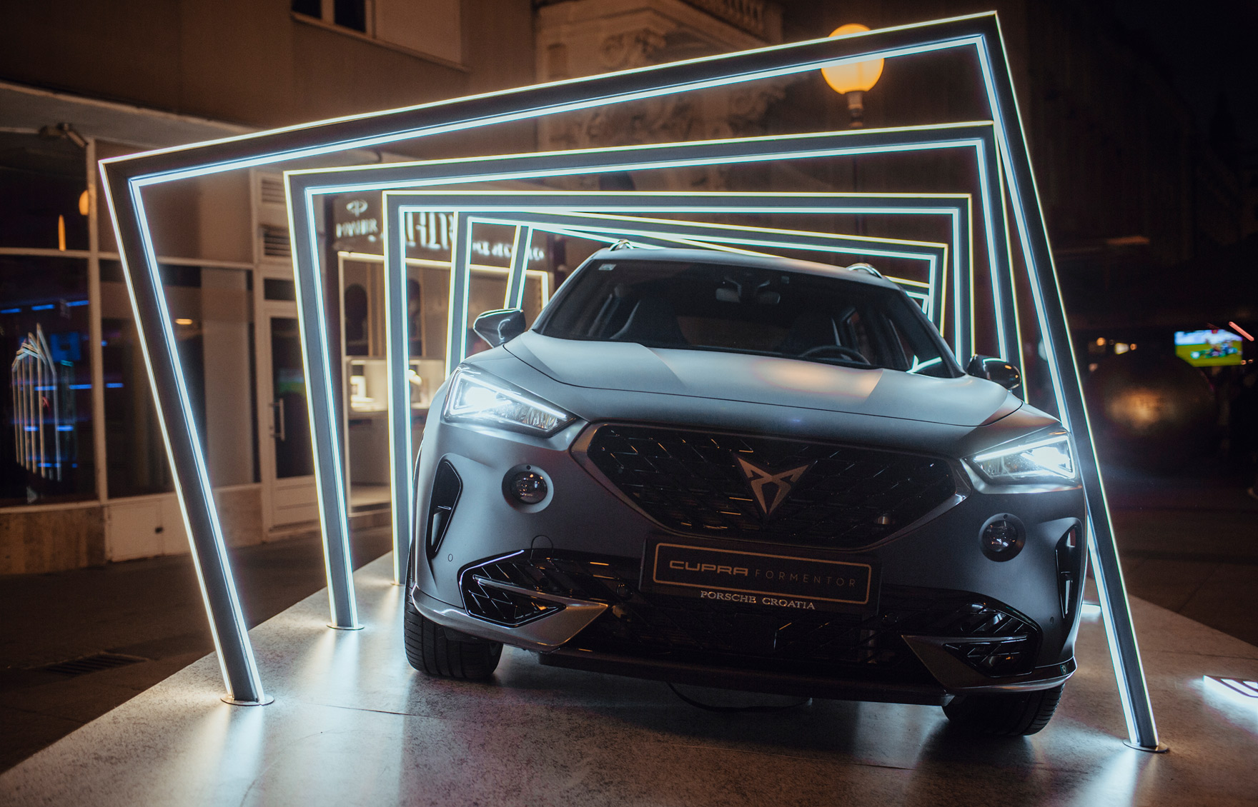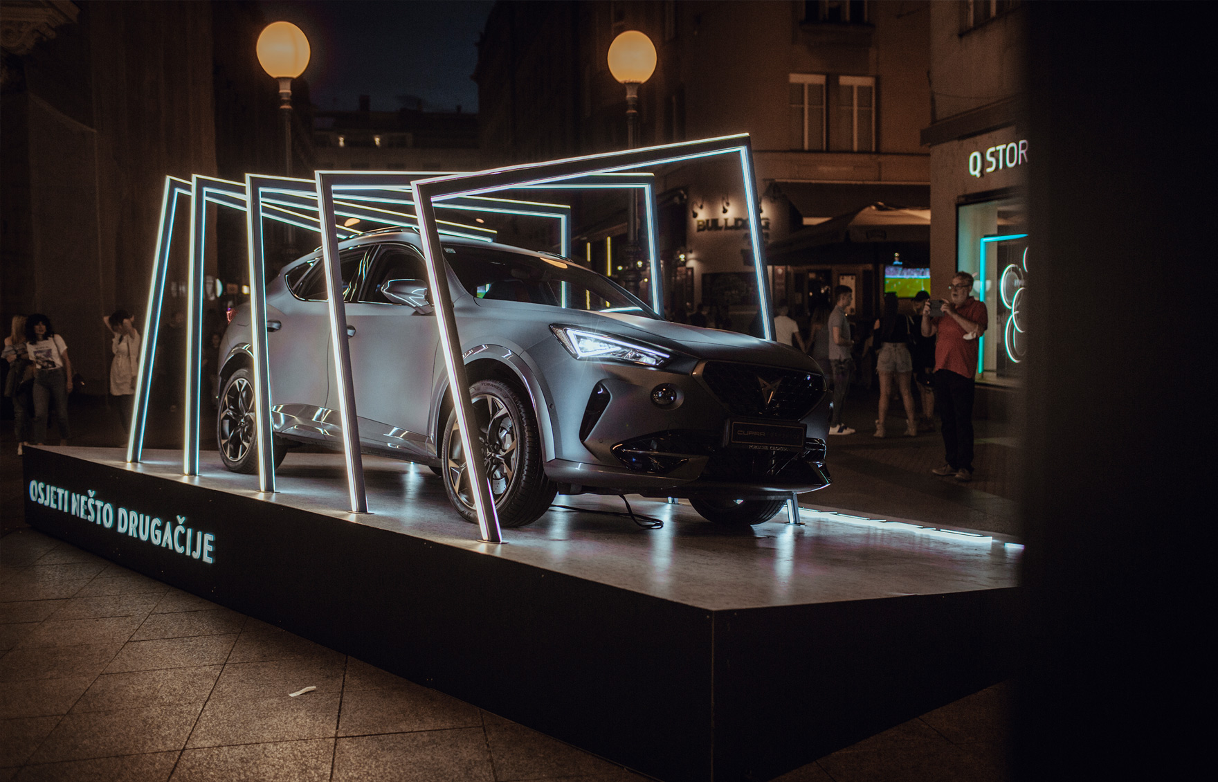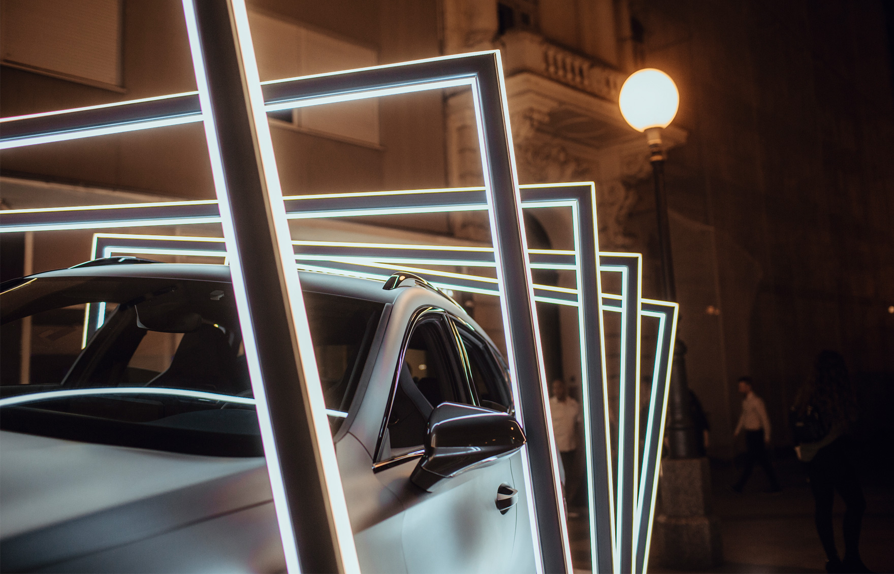 Koncept izlaganja u centru Zagreba kroz zanimljivu svjetlosnu instalaciju koja je naglasila dinamiku vozila, izmjenjujući vizuru instalacije iz dana u noć.
