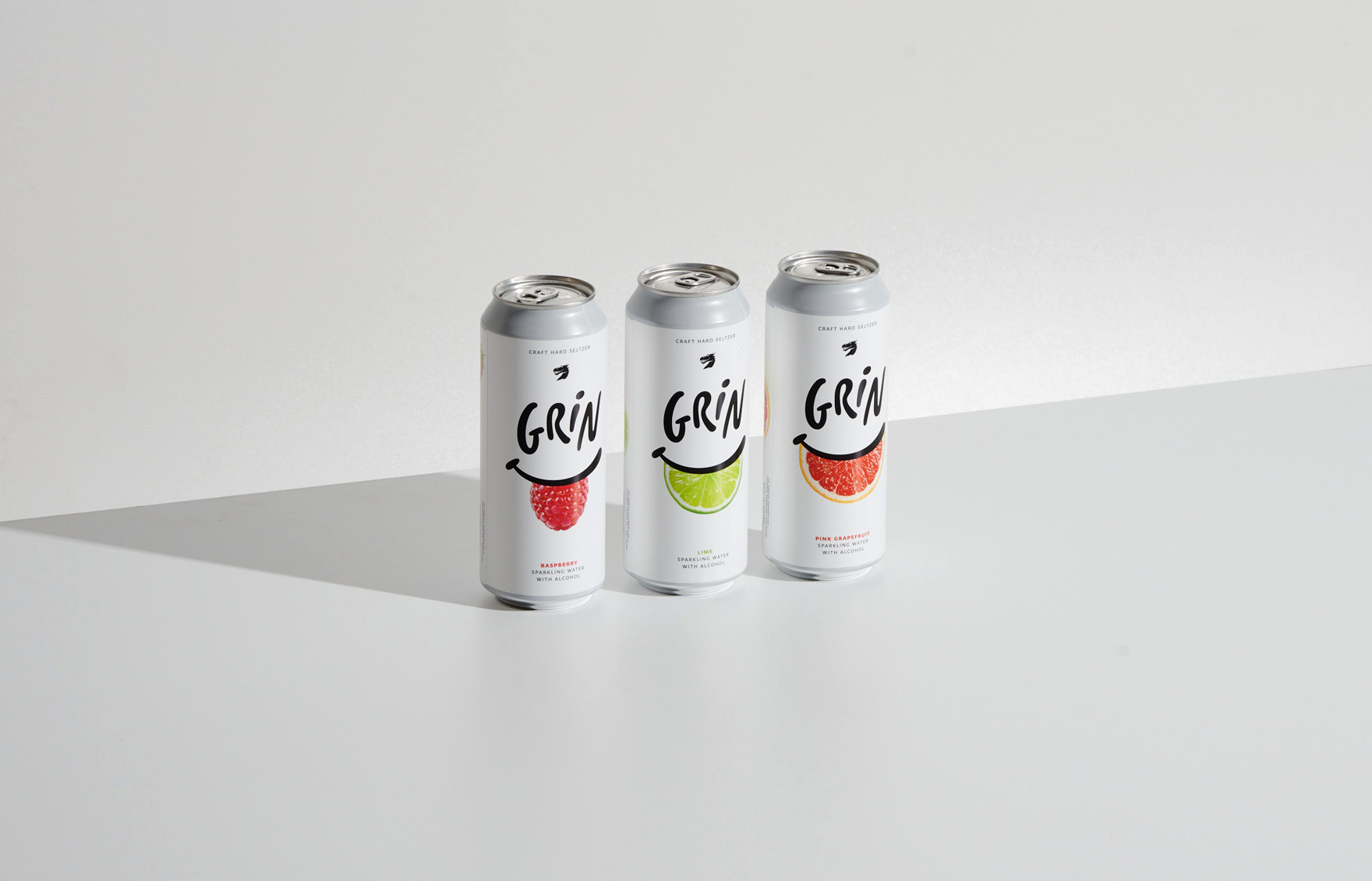 Hard seltzer je novi tip pića na hrvatskom tržištu. Radi se o mineralnog vodi, sa voćnom aromom i 5% alkohola. Grin je prvi craft hard seltzer na našem tržištu. Kako se radi o novom sektoru laganih alkoholnih pića - bilo je važno dizajnom ostaviti dojam o kakvom se piću radi.