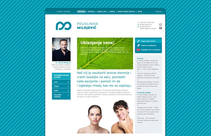 Poliklinika Milojević je najmodernija anti-aging poliklinika u široj regiji. Djeluje pod vodstvom dr. Nikole Milojevića, jednog od vodećih londonskih stručnjaka u području estetske medicine. Za Polikliniku Milojević radili smo potpuni vizualni identitet, od posjetnice i brošure do signalizacije… Znak poliklinike je spoj slova “m”, kao inicijala, i znaka beskonačnosti budući da su tretmani pomlađivanja glavno područje djelovanja poliklinike.