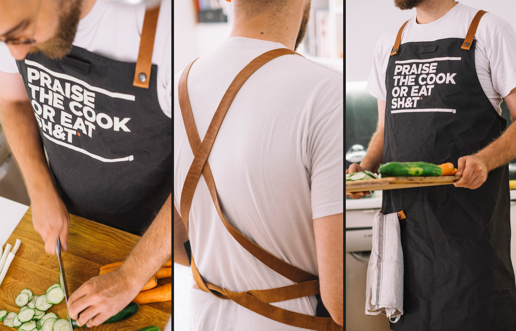 U Pločniku i Shopu kina Europa možete kupiti našu pregaču za kuhanje ‘Praise the Cook or Eat Sh&T’. Pregača je napravljena od najkvalitetnijih materijala i dizajnirana je tako da možete na nju računati cijeli život. Sistem vezanja kožnim trakama osmišljen je tako da ćete si moći namjestiti visinu i položaj pregače bez obzira na svoju visinu ili širinu.